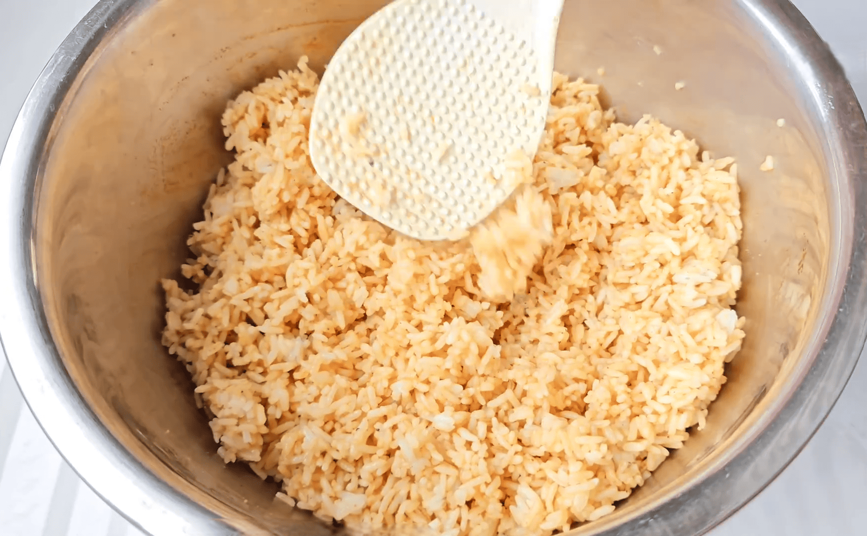 Luôn chiên trên lửa lớn để cơm tơi và không bị nhão.